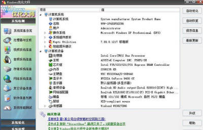 1、详尽准确的系统信息检测。Windows优化大师深入系统底层,分析用户电脑,提供详细准确的硬件、软件信息,并根据检测结果向用户提供系统性能进一步提高的建议。