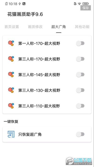 有专业的画质特效自定义,解决高画质看不见人,使用花猫画质大师画质,人物,更清晰,渣机和高端机使用以后效果更好!