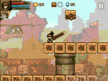 一打开游戏的那一刻其实内心是有点不安的,游戏的UI,主角的造型和那简洁的开场白,以及采用典型的副本闯关制,让人差点就认为这是一个挂机游戏了。当我开始批判这是一个伪单机游戏的时候,体验完前5关的瞬间我就对这个游戏有了新的认识:原来这是一个蜷缩在网游外壳里的纯粹的动作冒险游戏。但是在操作上依旧是熟悉的配方:左边方向键,右边分别是跳跃、攻击和技能。当然,玩家的任务更是简单粗暴,找到出口就可以顺利进行下一关。这看似很无脑的玩法在这个游戏中却意外的有难度。
