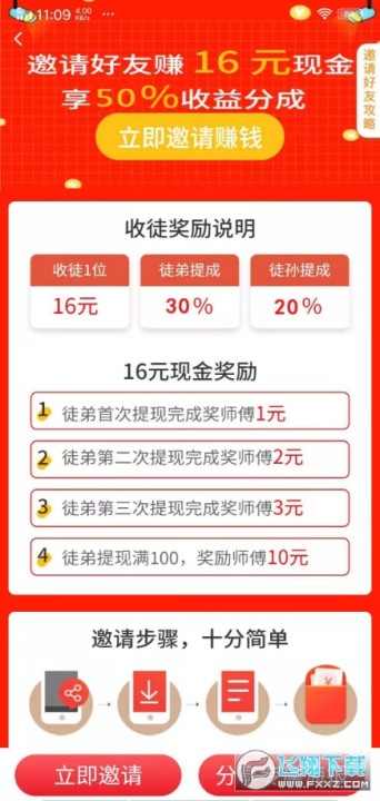 1、新上线期间同步开启收徒活动,收徒最高额外奖励8元一个徒弟,还有丰富高频各类赚钱活动;