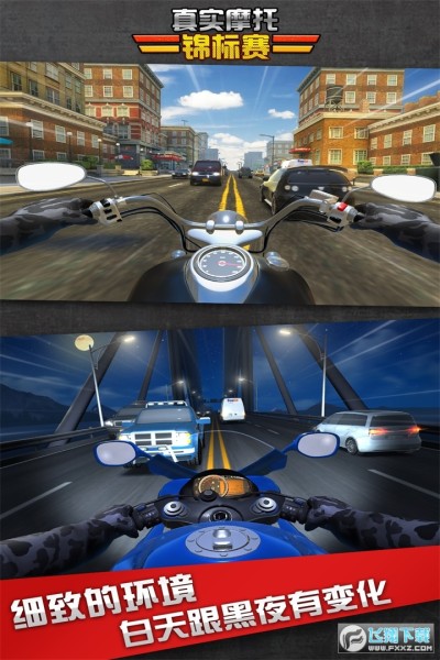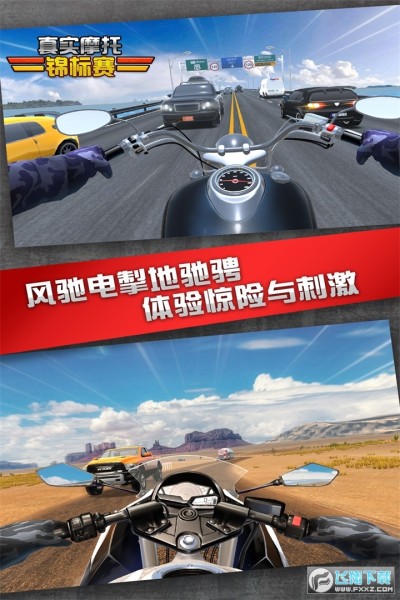 真实摩托锦标赛极限超车游戏:模拟赛车竞速的趣味游戏,喜欢驾驶摩托驰骋的玩家千万不要错过哦,真实的游戏环境能够让你体验真实的飙车场景,还可以进行自定义改变车漆和改装排气等,多种不同类型的摩托任你选择,其中还有拉风的哈雷可以体验哦,真实公路摩托锦标赛各种路况应有尽有,保证让你有个畅爽的竞速乐趣。