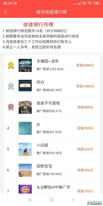 2.按照要求当月徒弟给全部贡献的奖励进行排名
