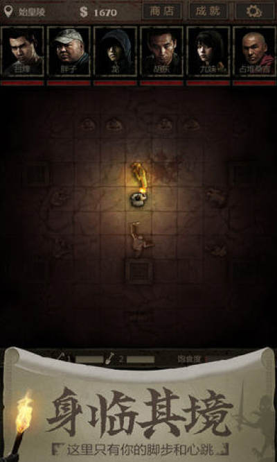 这是一场身临其境的墓下探险。带上有限的物资,你将进入危机重重的古墓之中,四处都有机关暗道,你只能凭着直觉和火光前行。棺材下可能是宝藏,亦或是怪物,战斗或是逃跑?这是你要考虑的问题。重重机关下,你又能走多远?死亡随时降临,财物或是食物,你会带走什么? 人点烛,鬼吹灯,在火把熄灭前,记得一定要回去。 【游戏特色】 身临其境——这里只有你的脚步和心跳 推开棺盖的声音在墓室回荡,没有人知道里面埋葬着的是厉鬼还是珍宝。食物已经见底,火把也即将燃烧殆尽,那火光照不亮的漆黑一角隐藏的可能是陪葬的游荡孤魂。先祖亡魂嘲笑着那些来到过这里,渴望着永生的蝼蚁。唯一能让你感受到活着的气息的,只有你的脚步和心跳,你还要继续往前吗? 机关重重——解开它你才能前行 天宫神兽机关,九州五岳连锁阵,八宝盒解谜,镜面迷阵,迷雾迷宫……这里危机重重,机关密布,你将跟随剧情,步步深入,数十种烧脑机关等待你一一破解。而且你要知道,如果你无法解开这些机关,你也将永远止步当前!只有智商爆表的人才能最终接触到藏在墓下千年的真相。