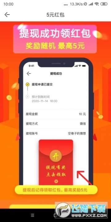 3、相比于以前推出的转发平台,这次推出的迎春网每次提现还可以开一个随机大红包,这一点比较类似于水仙网,还是非常不错的