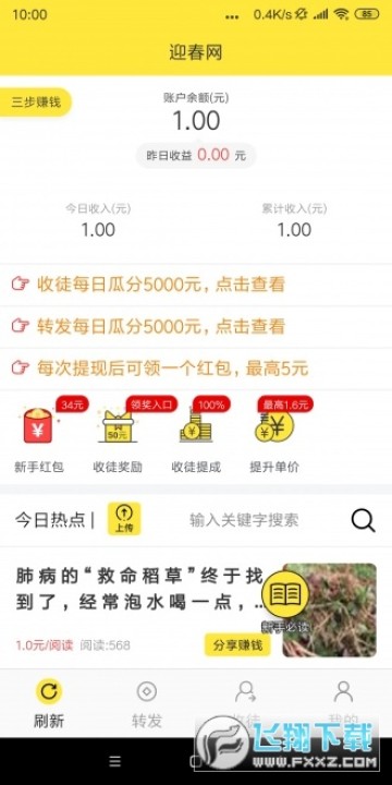 迎春网靠谱吗?迎春网转发文章赚钱是真的吗?迎春网app是来自随手旗下的新出转发文章赚零花钱的平台,注册就送新人奖励,完成新人任务可以获得更多奖励哦,转发文章满足要求还可以瓜分千元奖金,收徒也有瓜分奖励!!!