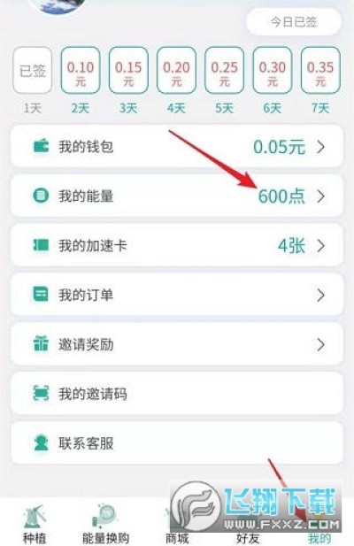 2、在我的我的能量页把能量兑换成现金;