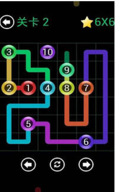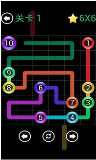 玩法:目的是通过线段连接所有的点,这些数字代表小球需要连接的线段线不能交叉,通过拖动你的手指从一个到另一个创建连接,点击一个线切断连接 。