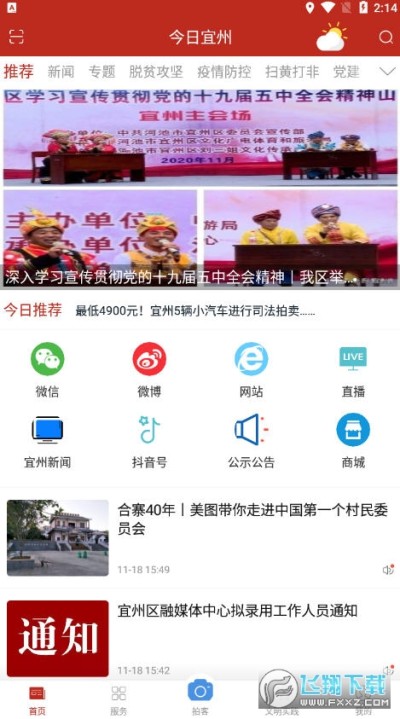 今日宜州app是一个综合了新闻、志愿服务、政务服务等多方面便民服务为一体的线上办事中心,整合了多方资源,为用户提供最大化的生活便利,不仅可以看新闻,还可以政务办事、生活办事等,有需要就下载今日宜州app吧。