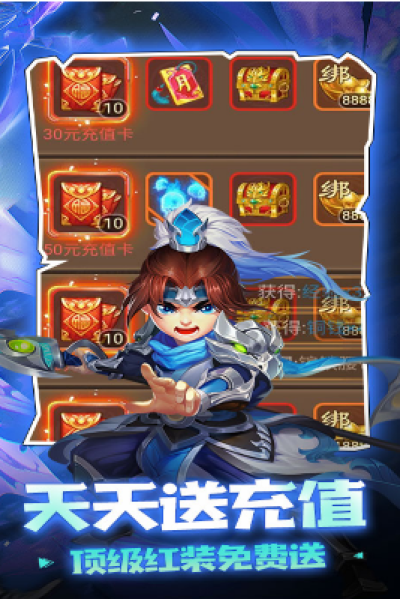 三国计送月卡送5000是款相当好玩的手机战斗三国游戏,在激情世界中玩家们就将通过我们的战斗和招募选择强力武将挑战自我。新奇玩法乐趣十足大量角色等待玩家们前去招募和体验,喜欢的朋友不妨速速下载吧