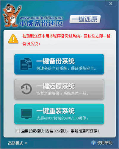 小虎一键备份还原是一款功能非常强大的系统备份还原工具,轻松一键恢复到最佳系统状态,专为电脑新手设计,操作更简单,更好用,更安全!