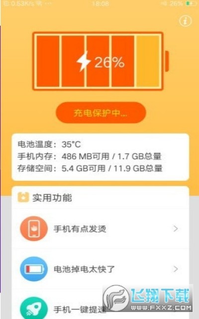 5、任务栏显示即时电量及电池温度,让你更了解您的手机;