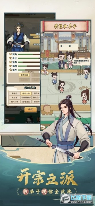 在踢馆进程中,少侠可根据战况为弟子传授功法秘籍,或治愈重伤弟子,提升队伍战力。