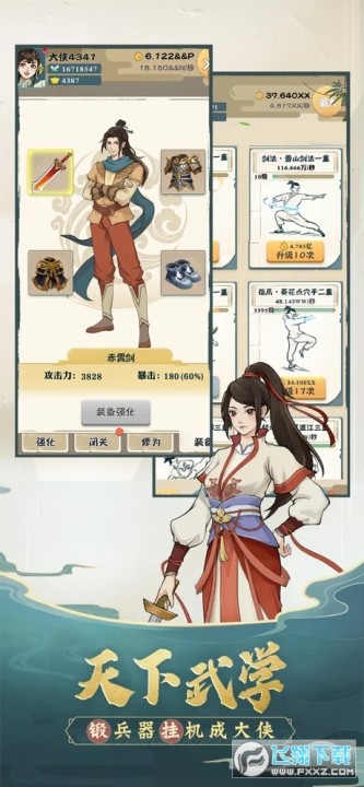 在这里,您可以修炼、进阶、突破各种秘传武功,体会到心法、拳法、腿法、剑法、刀法等武学的魅力,领会传统武学的博大精深。