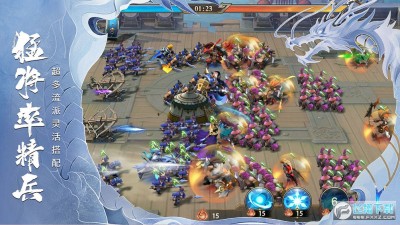 2、在游戏中,玩家可以选择一个军师出战,在战场上运筹帷幄,在恰当时机选择领域释放不同效果的计谋,关键时刻轻松扭转战局;同时,五行相生相克,战场局势瞬息万变,时刻掌握战场动态!