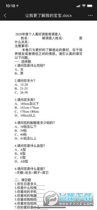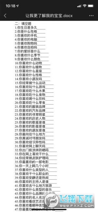 让我更了解我的宝宝表格是一款很火的表格,这个表格又是抖音带火的,意思就是看看自己对象有多了解你,是一款考验情侣关系的表格,所以大家要小心使用哦,一不小心可能情侣关系就出现了裂痕,让我更了解我的宝宝表格上面有很多问题,情侣双方都可以填写,看看双方有没有默契吧。