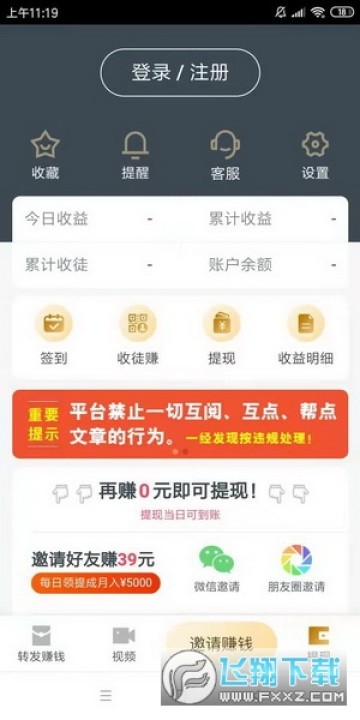 2.转发赚钱任务单价0.5元起,转发的文章每次被点击你就收益0.5元!