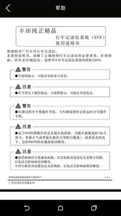 TOYOTA DVR行车记录仪配合丰田车辆的WIFI型行车记录仪使用,可实现实时视频显示,在线视频播放,及一些功能设置。