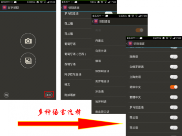 拍照前先设置识别翻译语言,语言种类比较全,视情况开启,建议最多选择3种语言