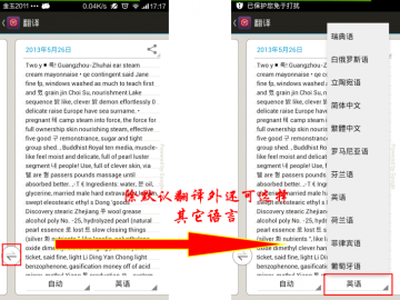 识别完毕后可点击右下角切换箭头显示其它语言翻译