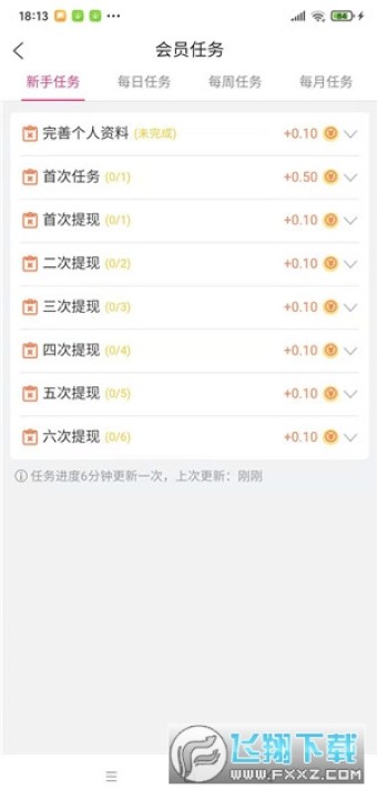 2、还有新手任务、每日任务、每周任务、每月任务,完成即可获得额外的现金奖励