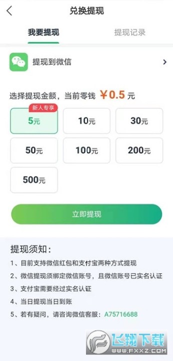 2、首次只需满5元提现,之后满10元提现,24小时到账