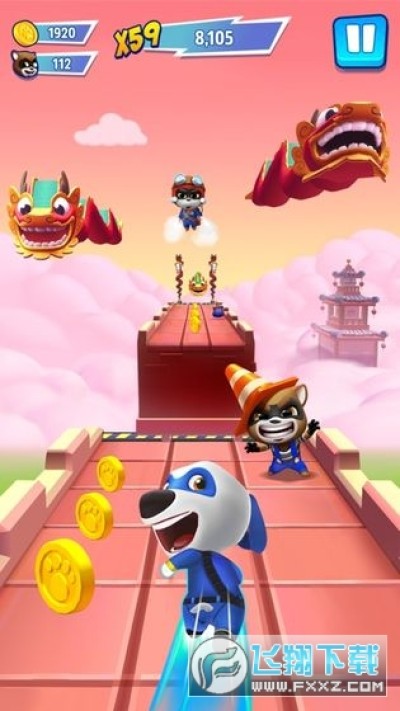 2、打败浣熊帮:除了收集金币和避开障碍,你还可以撞击浣熊来获取额外的奖励;