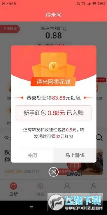 《得米赚转发赚钱软件是一款可以转发赚钱的手机软件。这里有丰富的资源新闻,包含各种新闻热点、优质文章,用户可以直接阅读转发,也可以分享邀请更多的好友加入,获得更多的分成,感兴趣的赶紧下载体验吧!
