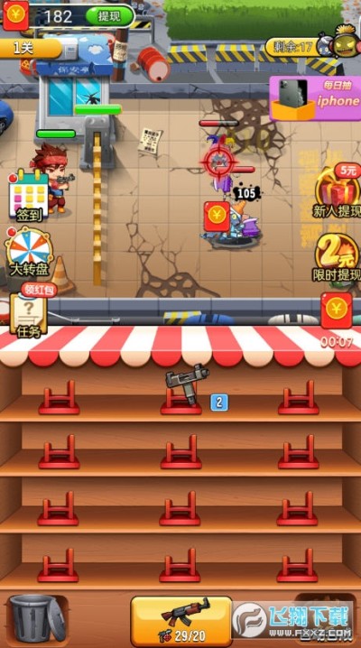 小区枪神真正红包游戏真的能赚钱吗?能提现是真的吗?小区枪神真正红包版游戏是一款合成+射击题材的赚钱游戏,通过合成获取高级别的武器,再去用来打击僵尸闯关,玩法耐玩有趣,红包奖励多多,喜欢就下载挑战吧。