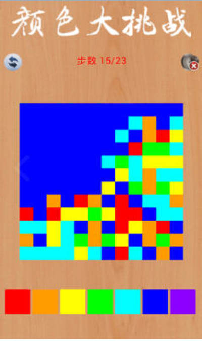 颜色大挑战是一款简单有趣的休闲益智游戏,游戏玩法非常独特,你需要做的就是将一种颜色填满整个画板,你可以用手指点击方块来选择颜色并让颜色染开,注意步数限制哦。