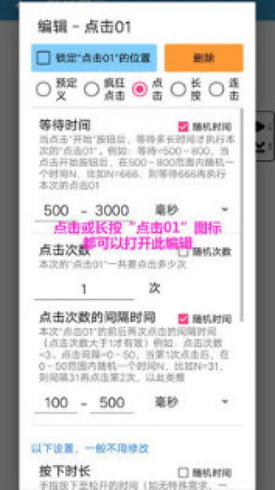 用的时候需要设置一下点击时间、次数、时间间隔等等,也可以使用默认的。