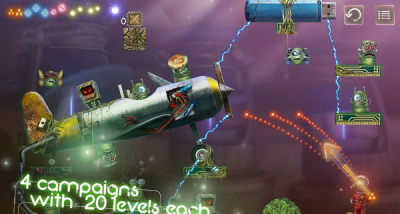 游戏操作很简单,类似于《愤怒的小鸟》,通过鼠标操控灯泡人射击的力度和方向。灯泡人所射出的虚线则是子弹发射的路线,消灭所有外星生物。