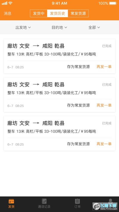 车真多货主是一款针对货主设计的工具,主要为货主提供发货、订单查询以及通话记录管理等功能;使用该软件之前需要在登录页面中点击同意协议并注册或登录才能获取账号并登录软件,进入该软件后就可以打开发货中心,在发货中心提供了各种不同状态的发货信息内容栏目,支持点击发货中的状态实时查看发货中的物流动态信息;系统设置了方便的常发货源类别栏目,这里面将用户经常发货的货源信息归集整理,只要切换到该栏就能快捷点击再发一单并马上生成订单,这样的设计为用户每次发货节约了相应的编辑时间,提高了发货效率。