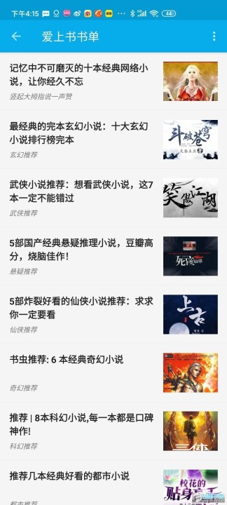 书荒区有各平台热门排行榜,书单区有大神整理的各分类书单,一点即看
