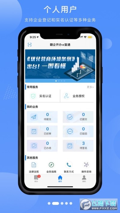 赣企开办e窗通移动客户端app支持个人用户和企业用户的线上办理服务,让大家少跑路,事情能够一次就解决,节省大家的时间,快速办理好相关的事情,有需要的朋友,赶快下载赣企开办e窗通移动客户端app体验吧。