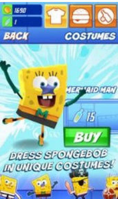 在玩法方面力求简单易上手,只需通过上下左右滑动屏幕即可。本作最吸引人的地方是游戏中有上百套不同的 cos 服装可以收集,并且每套服装都带有特殊能力,帮助我们更容易获得高分。看着贱萌的海绵宝宝和他的小伙伴们变身各种形象是不是觉得很有意思呢!