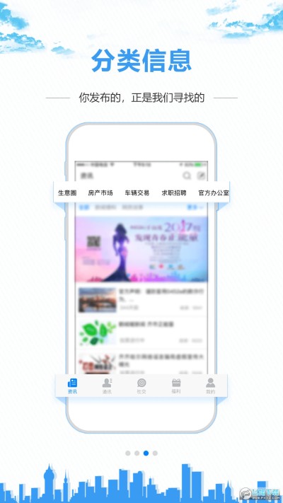 2、同城资讯,相亲交友,求职招聘、房产交易,汽车买卖,二手置换、兴趣联盟----最重要的是:全部免费!强大分享到所有主流平台:一键发布,横屏齐齐哈尔