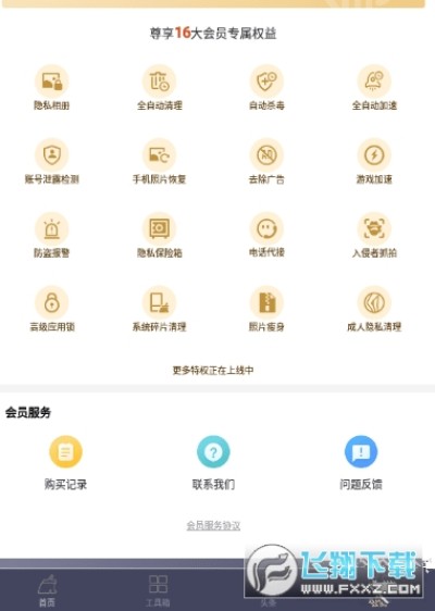 隐私清理重磅升级为安全和隐私,恶意软件和漏洞实时监控;全新隐私清理,私密(微信、陌陌等社交软件)聊天图片不再泄露。