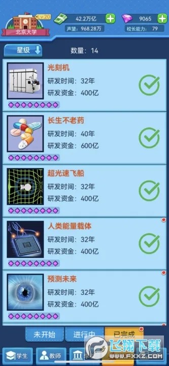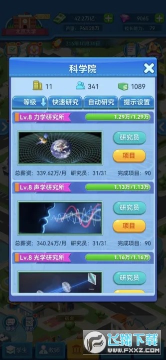 6.科学院:当你学校慢慢变强的同时,你可以招聘科研人员进行各种科技的基础研究,一旦成功还可以授权研究成果给社会科技公司,体现你学校的综合科研能力的时候到了;