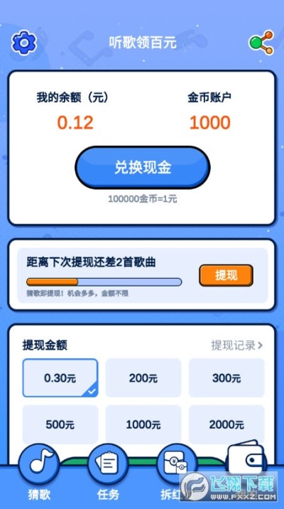 我来猜歌名赚红包游戏是真的能赚钱吗?可以提现吗?我来猜歌名赚红包游戏是一款真正的猜歌赚钱小游戏,并且还有邀请的功能哦,可以获得徒弟以及徒孙的任务奖励,而且提现的话也是有很多额度可以选择的,大额、小额都能快速到账。