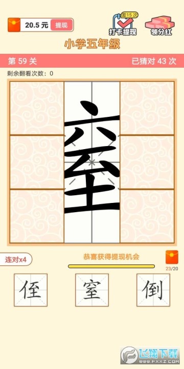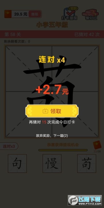 直接闯过5关猜字游戏,期间每通一关会要求看一个小视频,看小视频就能赚取平台分红。