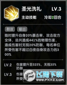 临时提升自身暴击率,攻击敌方全体,造成白夜自身百分比物理伤害,造成伤害时无视百分比防御,每个敌方单位承受伤害不超过白夜攻击力的一定数值。
