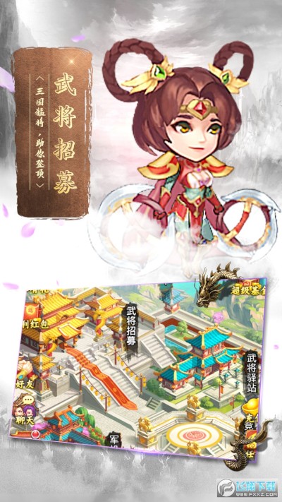 《蛮将三国》秉承三国精髓,以战争策略为主,辅以武将养成、内政治理、训练升级、擂台争霸等多重精彩功能;轻松精美的游戏画面让您在激烈的战斗中,倍感一份轻松;亲身体验三国争霸风云际会的王者之路!操作简单,打开游戏就能玩的便捷操作,真正实现一手控天下,首创推出三国武将缘份系统,完整记录您的三国成就之旅,超强"荣耀"尽在《蛮将三国》