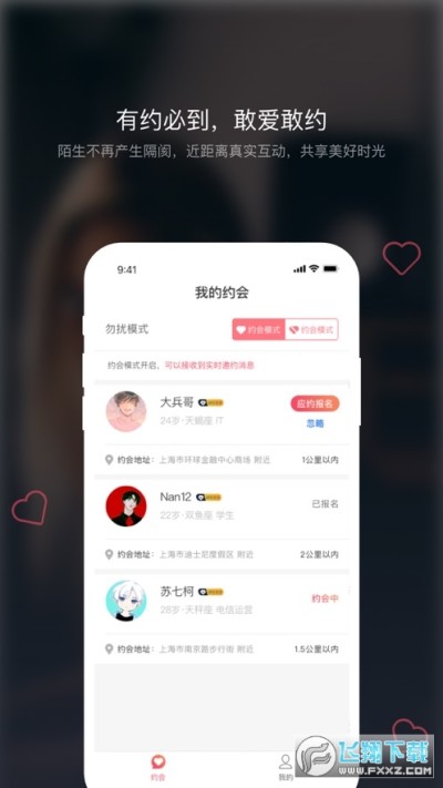 佳遇app是一款手机真人社交平台,有非常严密的审核制度,保证用户的真实性,在佳遇app上可以在线跟感兴趣的人打招呼,然后发布各种交友聚会信息,还能报名参加各种线下活动,玩法丰富,也能找到感兴趣的人哦!