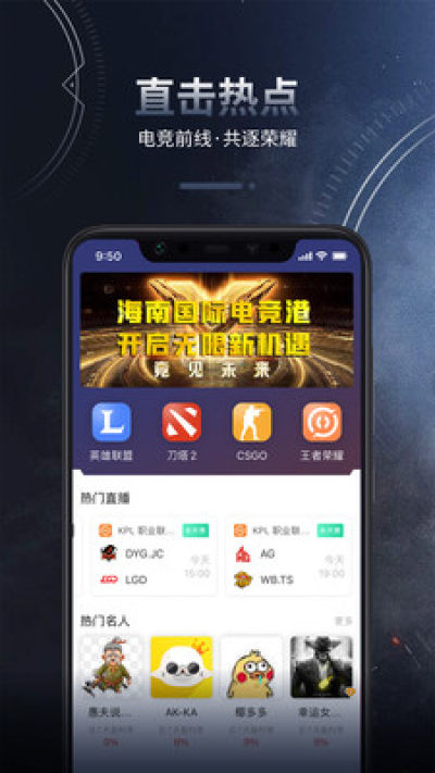提供覆盖英雄联盟(LOL)、DOTA2,、王者荣耀、和平精英、CSGO等各项主流电竞赛事的赛程,可以随时随地查看赛事赛程、比赛结果、赛事数据分析、比赛视频直播等。