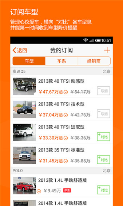3、【订阅】车型/车系/经销商,集中管理查看,降价促销第一时间提醒;