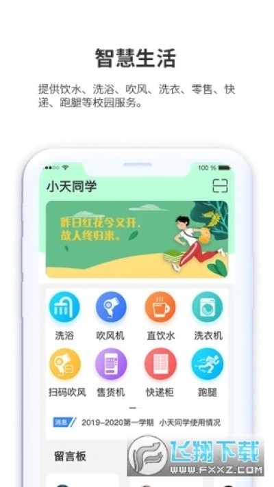 初版《小天同学》,一款集洗浴、吹风、直饮水、洗衣等物联网设备为一体主要服务于高等院校的手机客户端软件