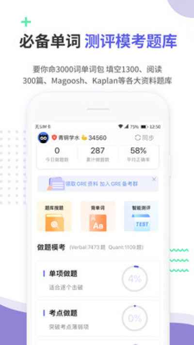 一:gre真题、机经题、模考题库全覆盖,精准数据轻松提分雷哥gre涵盖了gre填空、gre阅读、gre数学、gre写作等gre全科的考试考点练习。覆盖了就要你命3000词、gre填空等价词等gre备考必备单词包,以及gre经典填空真题1300、gre经典阅读300篇、150真题、CQ36套、XDF红/绿皮书、NO.题、OG题、猴哥难题、等各大备考资料题库,Princeton、magoosh、kapla等各大模考题库。