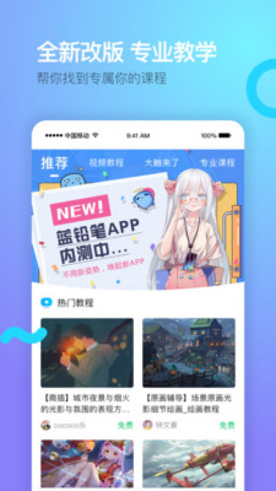 蓝铅笔app是一款手机学习绘画的app,这里都是各种喜欢线上绘画的爱好者,在这里有各种风格的绘画入门课程,在线学习,而且蓝铅笔app上还提供老师在线直播教学,作业上传老师点评,还有用户之间的交流评论等!