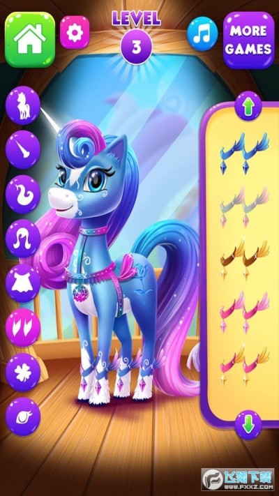 1、有多个可爱的小马宝莉可以和你一起玩耍哦,在玩耍之前你要先替它们美颜一番;
