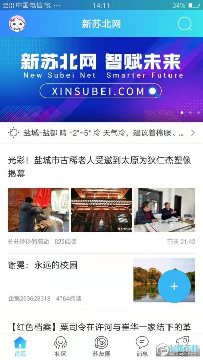 新苏北网app是苏北地区的官方门户网站,这款软件是为各位用户提供苏北地区的各种新鲜大小事,在新苏北网app上可以查看当地的新闻信息,还有社交圈子,吃喝玩乐等等各种方面的信息哦!
